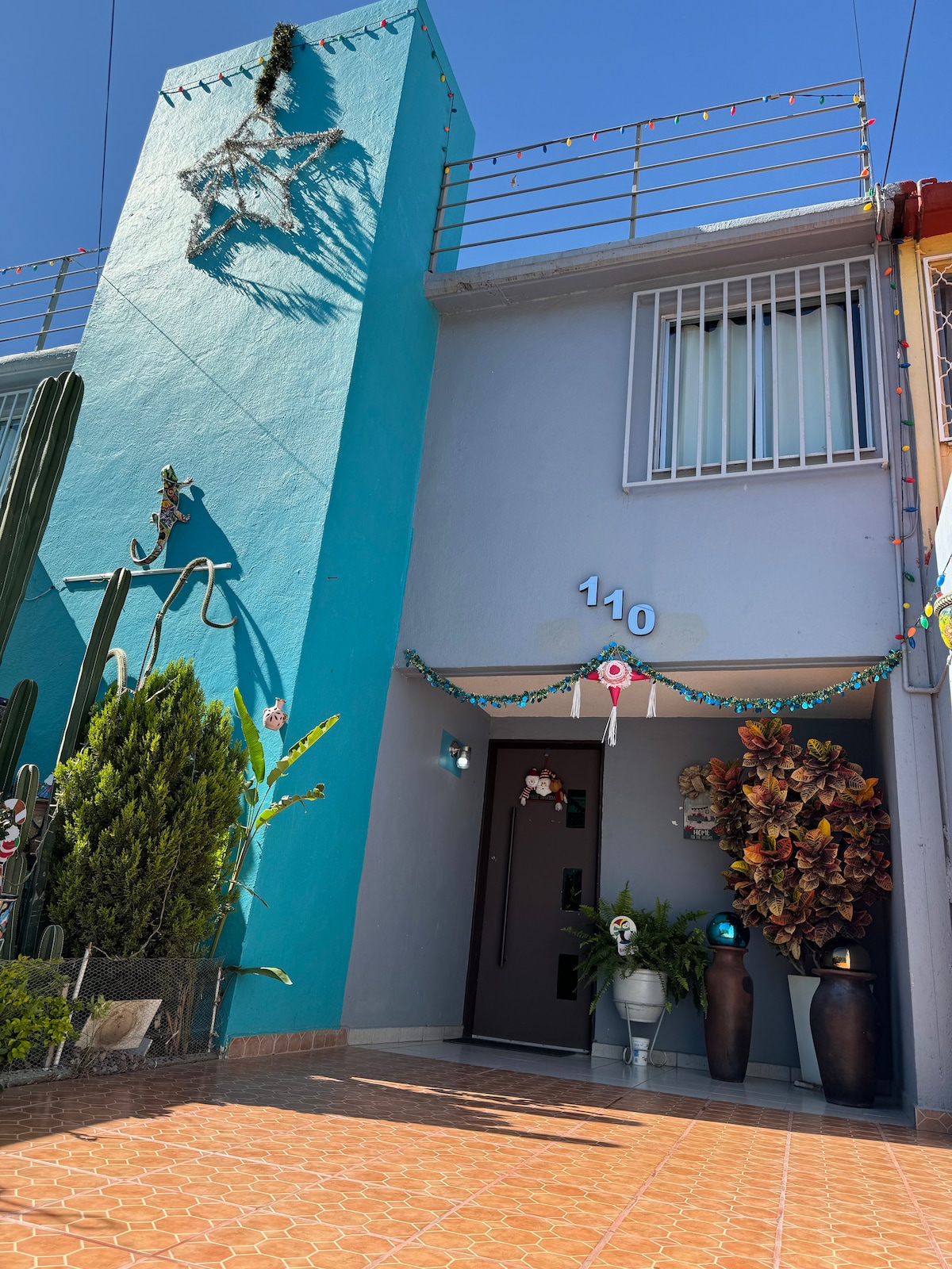 Es una casita completa con dos recámaras disponibles para hospedar cómodamente hasta 4 personas. Cuenta con cochera, sala-comedor, cocina, patio pequeño de servicio (con lavadero de granito para lavar a mano) y un linda terraza a la que se puede acceder desde cualquiera de las dos recámaras.