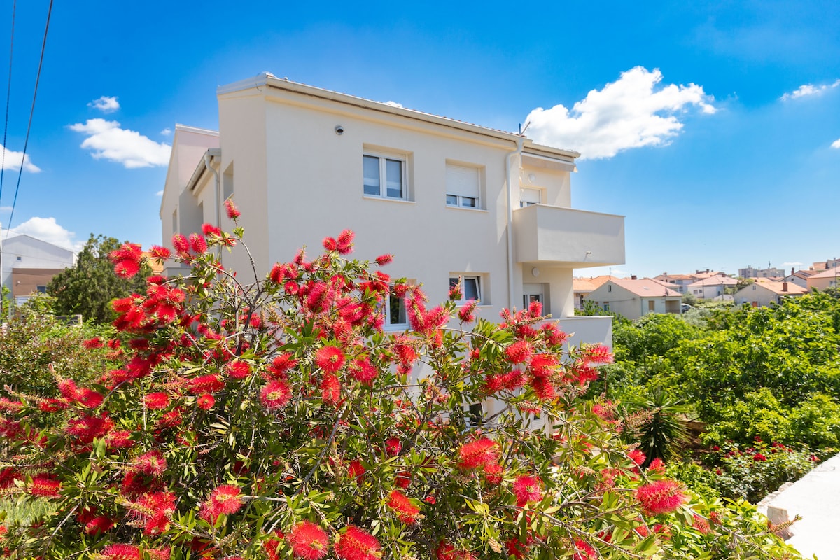 커플이나 친구들에게 이상적인 새롭고 아늑한 1층 아파트로 퀸사이즈 침대와 지중해 정원 전망을 자랑합니다. 여러분의 편안한 숙박을 위해 필요한 모든 것을 갖추고 있습니다. 자다르의 보릭 관광 지역에 있는 평화로운 거리에 위치한 이 아파트는 도보 거리 내에 있습니다. - 맘마미아, 생선 레스토랑 니코와 같은 인기 레스토랑 - 상점, 약국, 은행 - 자동차, 자전거, 보트 대여