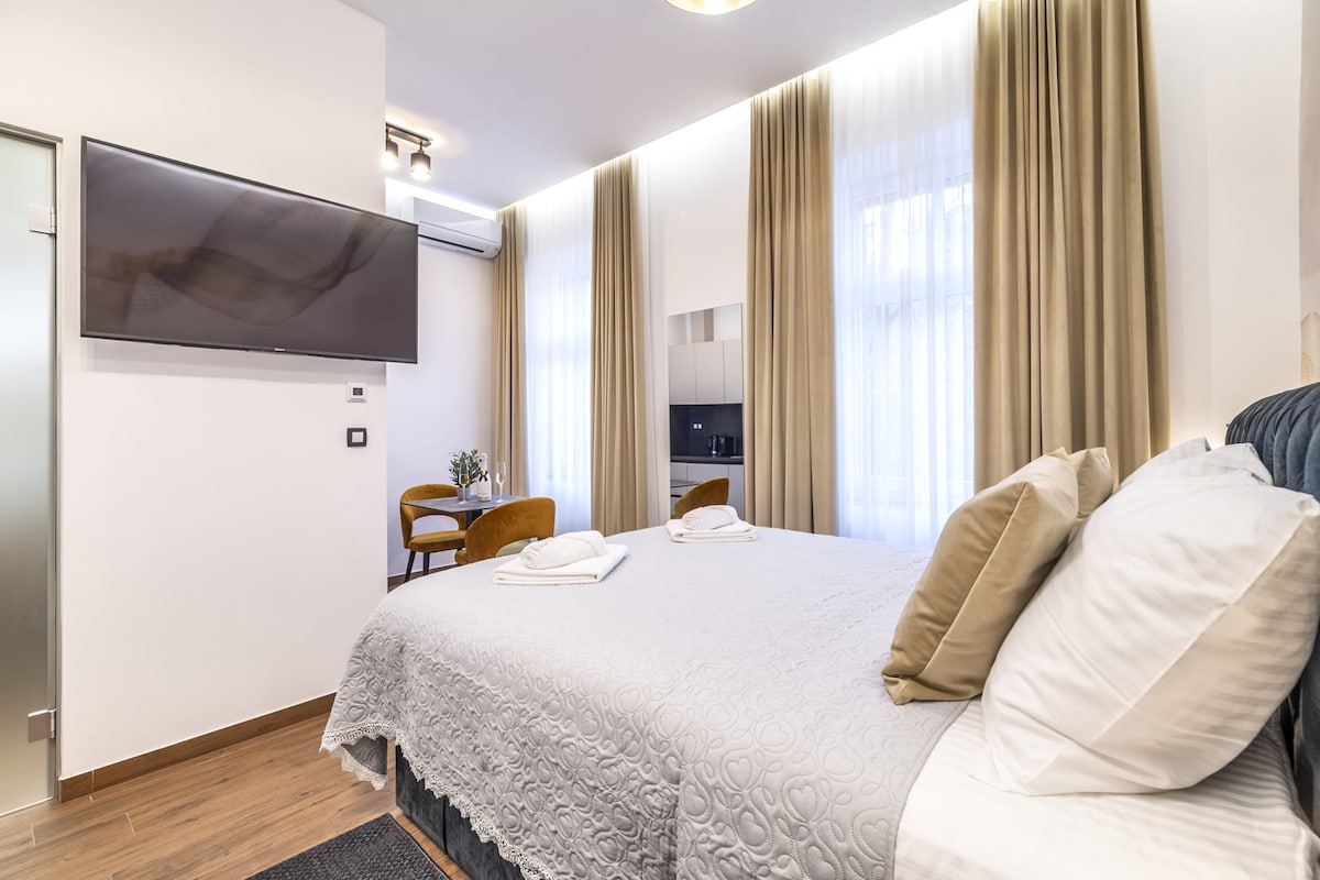 도심의 트칼치체바 울리카(Tkalčićeva ulica)에 위치한 아파트. 레스토랑, 카페, 기념품 상점이 가득한 보행자 구역에 위치해 휴식을 취하고 즐거운 시간을 보내기에 좋습니다. 개방형 공간 컨셉. 웰니스 룸 포함: 콤보 사우나(핀란드 및 적외선), 2인용 욕조 및 대형 샤워 부스. 퀸사이즈 침대와 휴식을 위한 요가 의자. 엘리베이터가 없는 건물 4층에 있습니다. 게스트의 재량에 따라 언제든지 디지털 잠금장치가 있는 출입구로 들어갈 수 있습니다. 필수 가전제품이 완비된 주방.