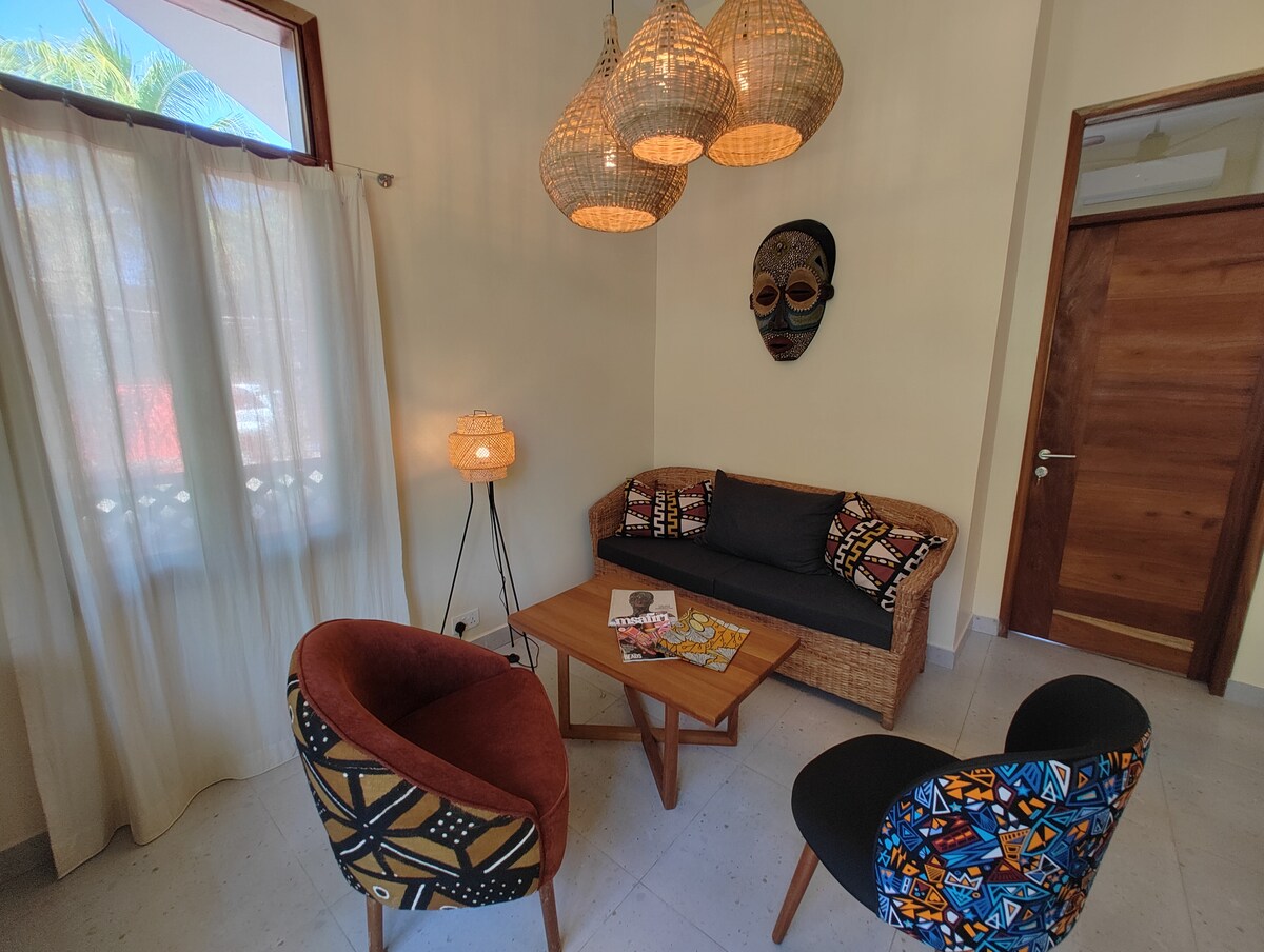 이 멋지고 밝은 아파트는 현대적인 아프리카 스타일로 아름답게 꾸며져 있으며 울창한 열대 정원 안에 자리잡고 있습니다. 잠비아니의 하얀 해변을 마주보고 있는 숙소에 자리잡고 있으며, 현대적인 편안함과 풍부한 아프리카 문화, 수제 목재 가구, 활기찬 예술품이 독특한 조화를 경험해보세요. 욕실은 고급스럽고 모던하며 유리 타일과 가벼운 포인트와 같은 독특한 감각이 특징입니다. 숙소의 반짝이는 수영장에 뛰어들어 상쾌한 휴식을 취하거나 티키 바에서 음료를 즐겨보세요.