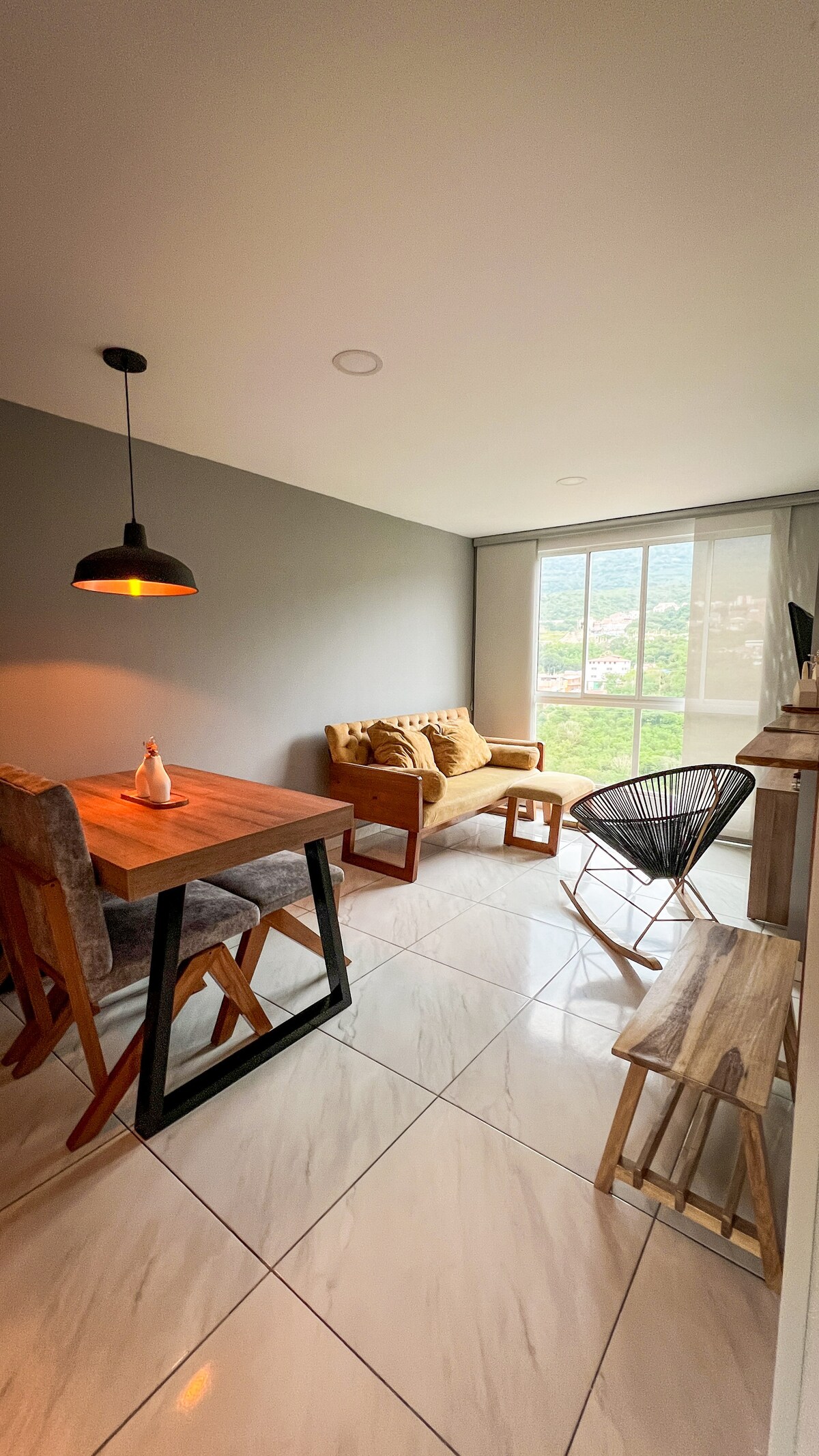 ✨ Acogedor apartamento de 2 habitaciones y 1 baño, ideal para hasta 5 personas. 🛏️ 1 Cama king, 2 camas sencillas y sofá cama. Cada habitación cuenta con TV, ventilador y balcón. 🍳 Cocina americana equipada, sala cómoda, parqueadero privado, lavadora/secadora comunal. 🌴 Amplia zona húmeda con piscina y jacuzzi. 🐶 Pet friendly con normas de aseo (max.1), WiFi excelente y anfitrión disponible. 🌇 Ubicación excelente, zona tranquila, a solo 5 min del parque principal..