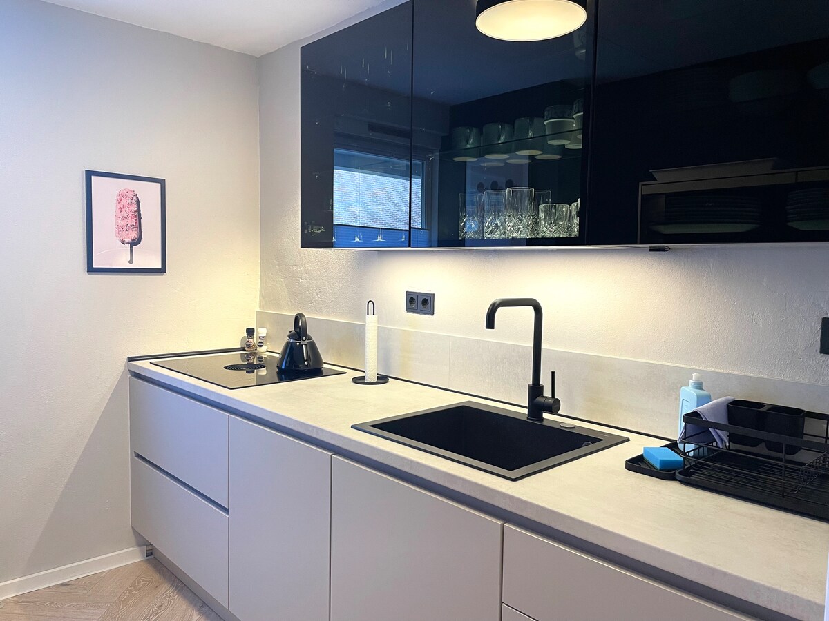 역사적인 요새 마을 베레에서 도보로 불과 몇 분 거리에 있는 70m²의 현대적이고 새롭게 리모델링한 3룸 아파트입니다. 저희 아파트는 벽난로가 있는 넓은 거실/식사 공간, 고급 주방, 박스 스프링 침대가 있는 침실 2개, 소파 베드로 변환되는 소파로 구성되어 있습니다. 작은 정원이 달린 테라스에서 일광욕을 하고 놀 수 있습니다. 자전거나 자동차로 해변과 정박지까지 매우 빠르게 이동할 수 있습니다. 이곳에서 집처럼 편안하게 지낼 수 있습니다. :)