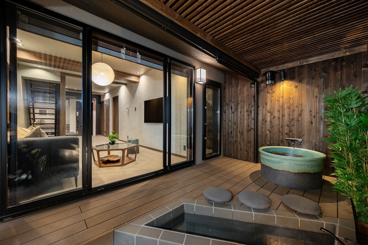 고급 일본식 프라이빗 정원 저택 | 난바역에서 도보 6분 | 심사이바시, 쿠로몬 시장까지 도보 10분 이내 | 130㎡ 9명 숙박 | 관공공항 직통