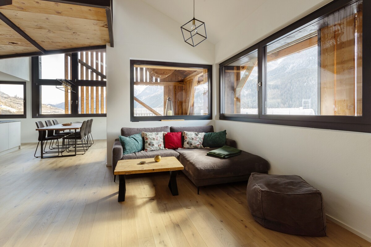 Geniessen sie den atemberaubenden Panoramablick von ihrer heimeligen Wohnung aus, inmitten einer herrlichen Bergwelt, abseits der Hektik des Alltags. Es erwartet sie, eine hochwertige Einrichtung mit vielen liebevollen Details. Eine offene, komplett ausgestattete Wohnküche mit angeschlossenem hellen, modernen Wohnbereich wartet auf Kochkünstler. Zwei Schlafzimmer mit Doppelbetten laden zu erholsamen Nächten ein. Im Sommer steht unseren Gästen ein gemütlicher Sitzplatz bereit.