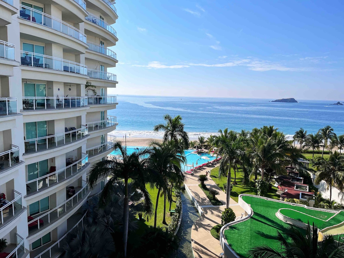 일년 내내 아름다운 해변을 즐겨보세요. 익스타파 최고급 리조트 중 하나의 6층에 위치한 이 바닷가 콘도에 머물며 독특한 바다 전망을 즐겨보세요. 인피니티 풀에서 수영을 즐기고, 해변의 팔라파 아래에서 휴식을 취하고, 풀사이드 레스토랑에서 음료를 마시거나 스파에서 마사지를 받고, 테니스나 패들 게임을 즐겨보세요. 또는 발코니에서 프리미엄 커피를 마시며 태평양의 숨 막히는 전망과 가장 눈부신 석양을 즐길 수 있습니다. 이 숙소는 모든 것을 갖추고 있습니다!