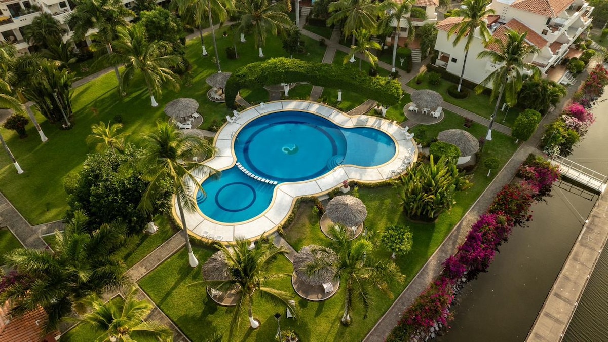 이 아름다운 저택은 요트와 등대 옆의 우아한 레스토랑 옆에 있는 마리나 드 익스타파의 최고의 지역에 위치하고 있으며, 새로 리모델링하여 가실 수 있습니다. 아름다운 수영장과 울창한 열대 정원을 공유하는 16개의 저택으로 이루어진 앙상블에 있습니다. 성인 6명과 어린이 4명에게 이상적인 크기입니다. 타의 추종을 불허하는 야자수 테라스 그늘 아래 뛰어난 기후와 함께 게스트를 위한 휴식 공간입니다.