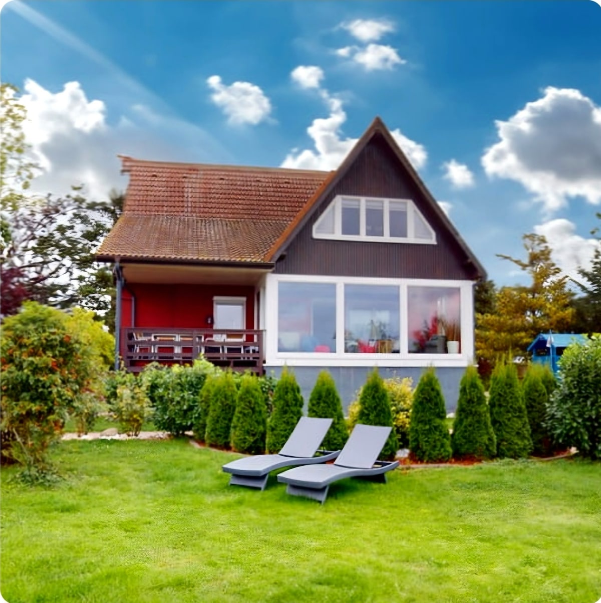 Du wohnst ganz allein mit deinen Lieben in dem geräumigen Haus auf dem großen Grundstück direkt am Peene-Strom. Das Haus ist hochwertig und modern eingerichtet. Die Zimmer sind gemütlich und individuell. Das Herzstück ist der große Wintergarten mit Blick auf das Wasser. Du findest hier einen ruhigen und idyllischen Ort inmitten der Natur am Wasser.Für Abwechslung sorgt ein Riesentrampolin, Gokarts, Tischtennis, Fußballkicker, Dartscheibe oder die Kajaks, um die Gegend vom Wasser aus zu erkunden.