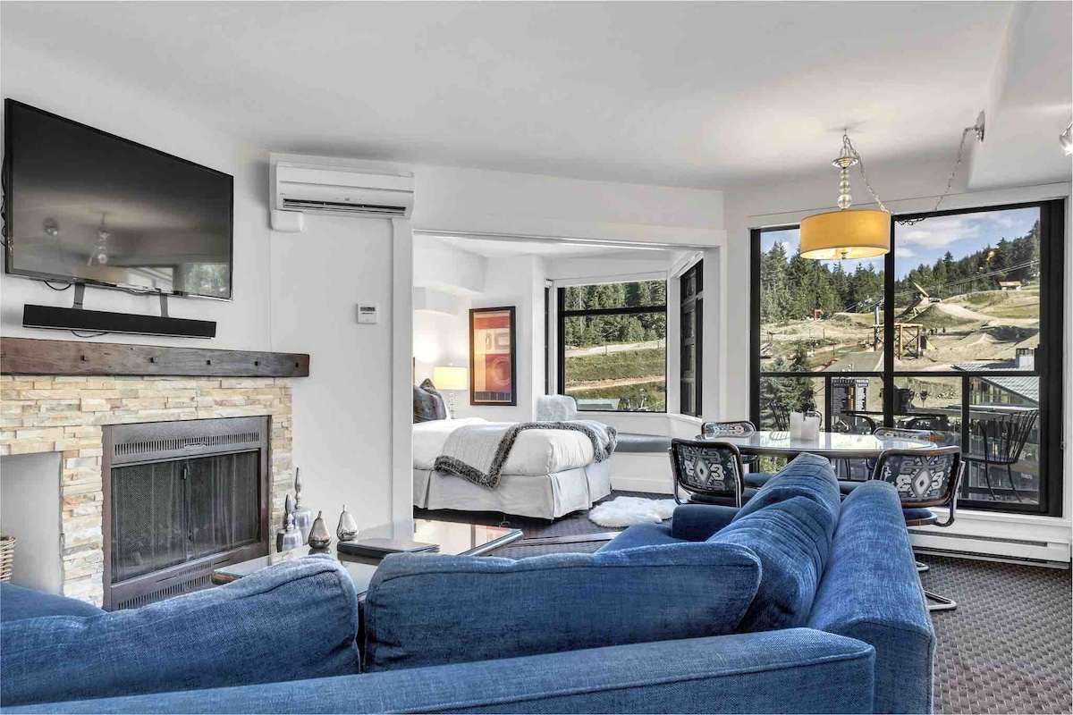 산 오아시스에 오신 것을 환영합니다. 블랙콤 리프트에서 도보 1분 거리! 현대적인 콘도는 밝고 넓은 침실 1개로, 창문으로 둘러싸여 나무가 늘어선 전망과 산의 전망을 완벽하게 즐길 수 있습니다. 주방 테이블에서 커피를 마시며 휘슬러 산을 올려다보세요! 이 스위트는 모든 것을 갖추고 있습니다. - 킹사이즈 침대 - 소파 베드 - 완비된 주방 - 비누 제트 욕조 - Keurig - 보스 스피커 - 중앙 에어컨 - 2025년 7월 업그레이드 건물에는 헬스장, 세탁소, 수영장, 야외 온수 욕조가 있습니다.