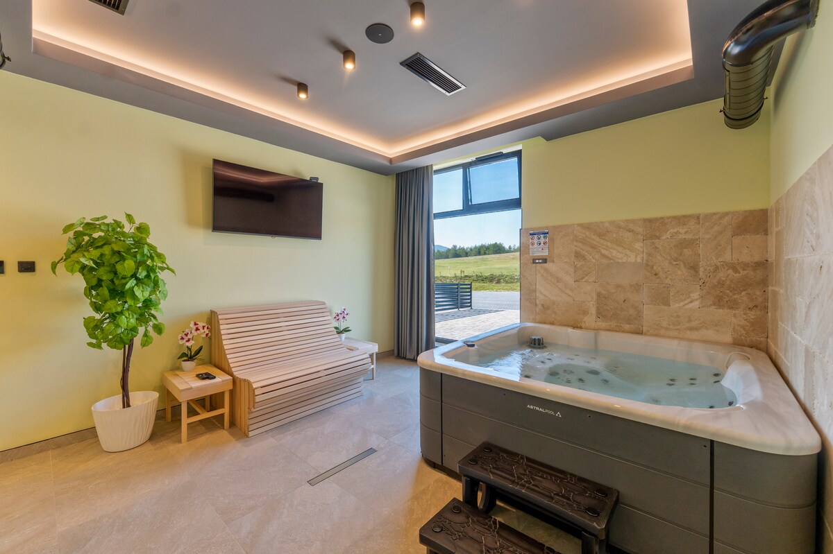 이 아파트는 완전히 새롭고, 즐라티보르에서 가장 아름다운 지역에 있는 티토의 빌라 단지에 있습니다. 단지 전체가 소나무로 둘러싸여 있어 게스트에게 편안함과 완벽한 휴가를 선사합니다. 게스트는 TV, 최신 게임을 즐길 수 있는 소니 4 프로입니다. 와이파이, 완비된 주방, 세탁기, 다리미, 헤어드라이어, 신선한 침구와 수건이 완비되어 있습니다. 이 단지에는 사우나, 실내 수영장, 온수 욕조, 소금방, 마사지, 헬스장이 있는 스파도 마련되어 있습니다. 주차장이 제공됩니다.
