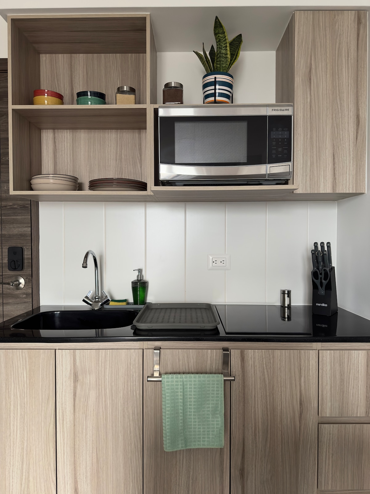 Vive de la experiencia de alojarte en un apartamento moderno con amplio balcon completamente nuevo en Guatemala, con la mejor ubicación en zona 10 (Zona Viva). Nuestro apartamento con toques modernos, elegantes que acompañan de una vista sin igual, brindan calma y tranquilidad en una de las zona más exclusivas de nuestro país. Tendrás la oportunidad de alojarte cerca de centros comerciales, restaurantes y zona hotelera a menos de 5 minutos a pie.