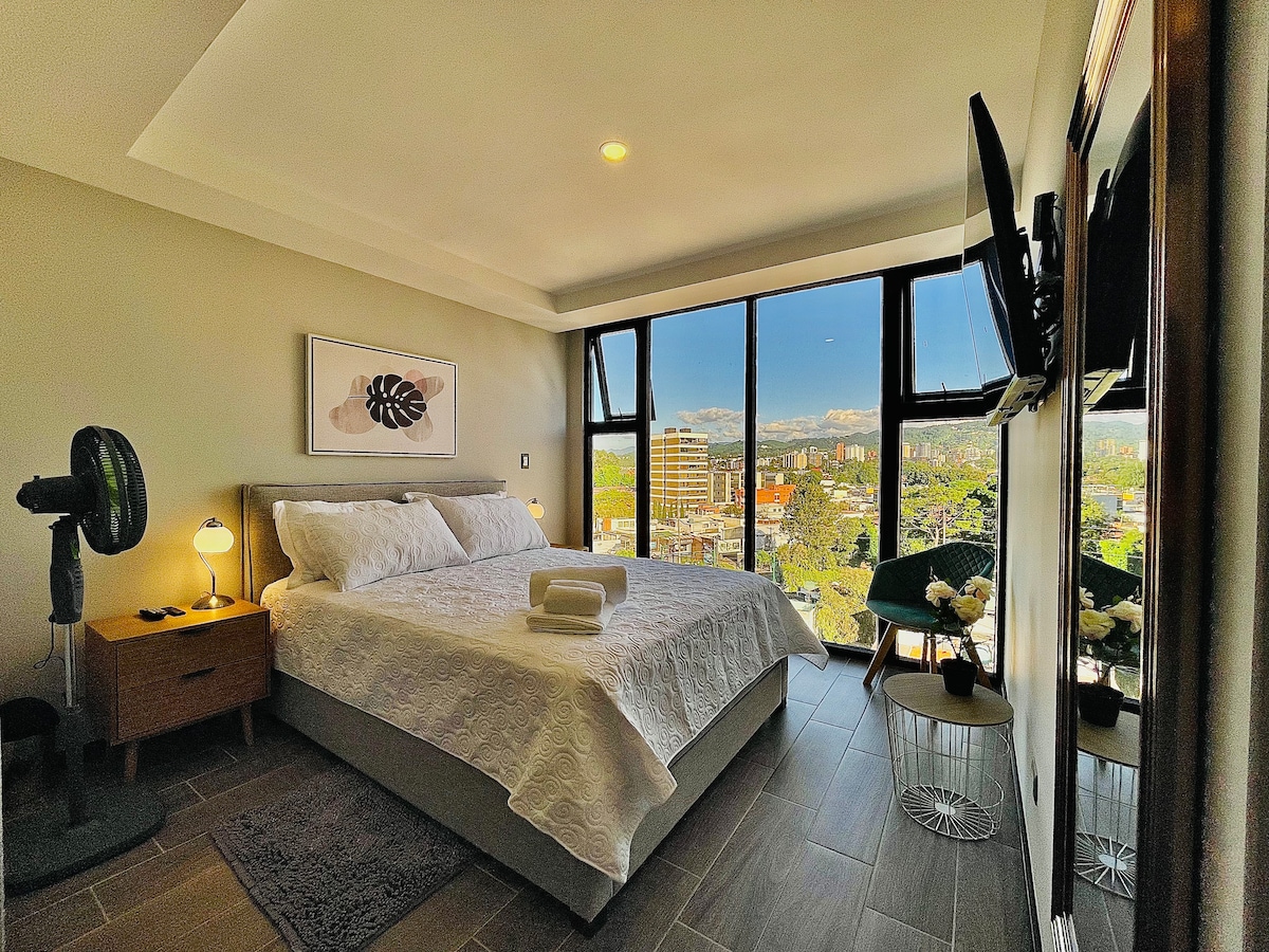 발코니에서 아름다운 아과 화산의 전망을 감상할 수 있는 에어컨이 설치된 매력적인 소형 스튜디오 아파트를 즐겨보세요. 과테말라 상업 및 비즈니스 지구의 중심에 전략적으로 위치하고 있으며 공항에서 불과 15분 거리에 있습니다. 이 아파트는 다양한 레스토랑, 바, 쇼핑 센터로 둘러싸여 있어 숙박을 최대한 즐길 수 있는 독특한 경험을 제공합니다.