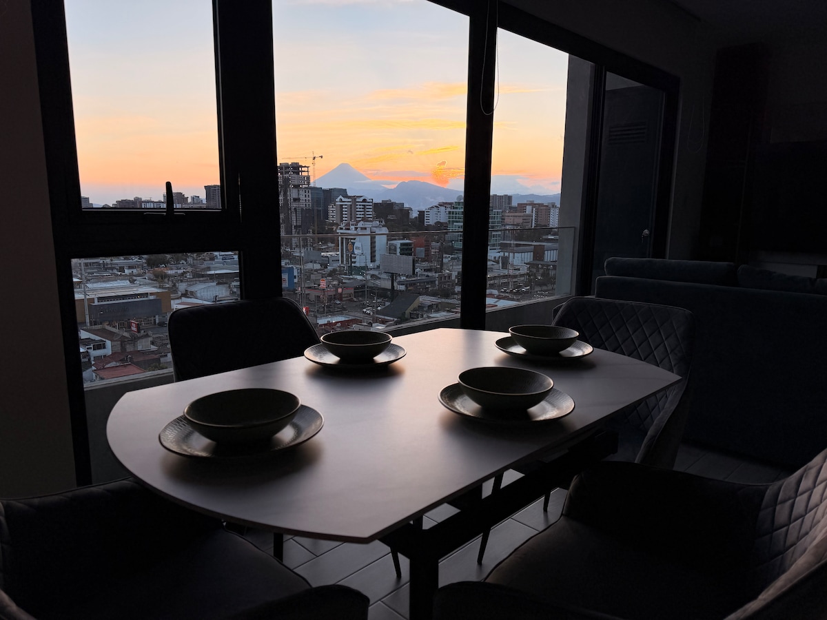 Vive de la experiencia de alojarte en un apartamento moderno con amplio balcon completamente nuevo en Guatemala, con la mejor ubicación en zona 10 (Zona Viva). Nuestro apartamento con toques modernos, elegantes que acompañan de una vista sin igual, brindan calma y tranquilidad en una de las zona más exclusivas de nuestro país. Tendrás la oportunidad de alojarte cerca de centros comerciales, restaurantes y zona hotelera a menos de 5 minutos a pie.