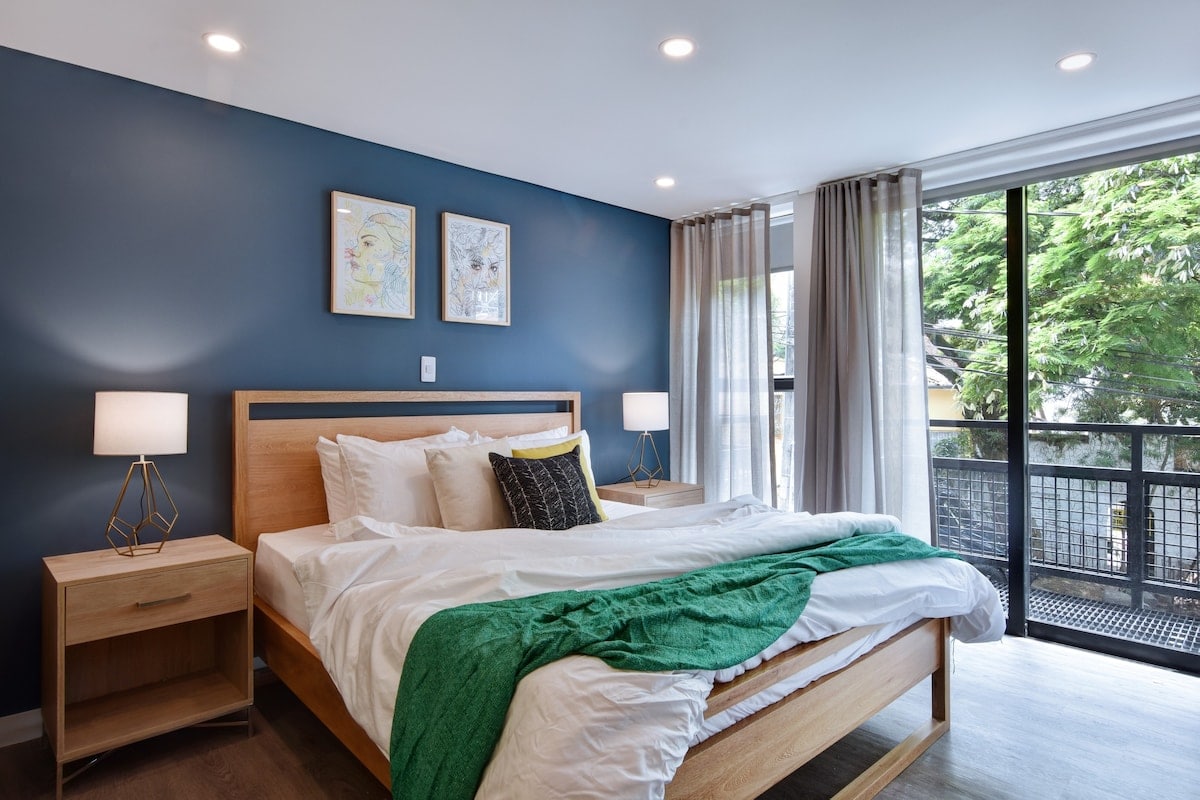 도시의 멋진 전망을 자랑하는 현대적인 숙소